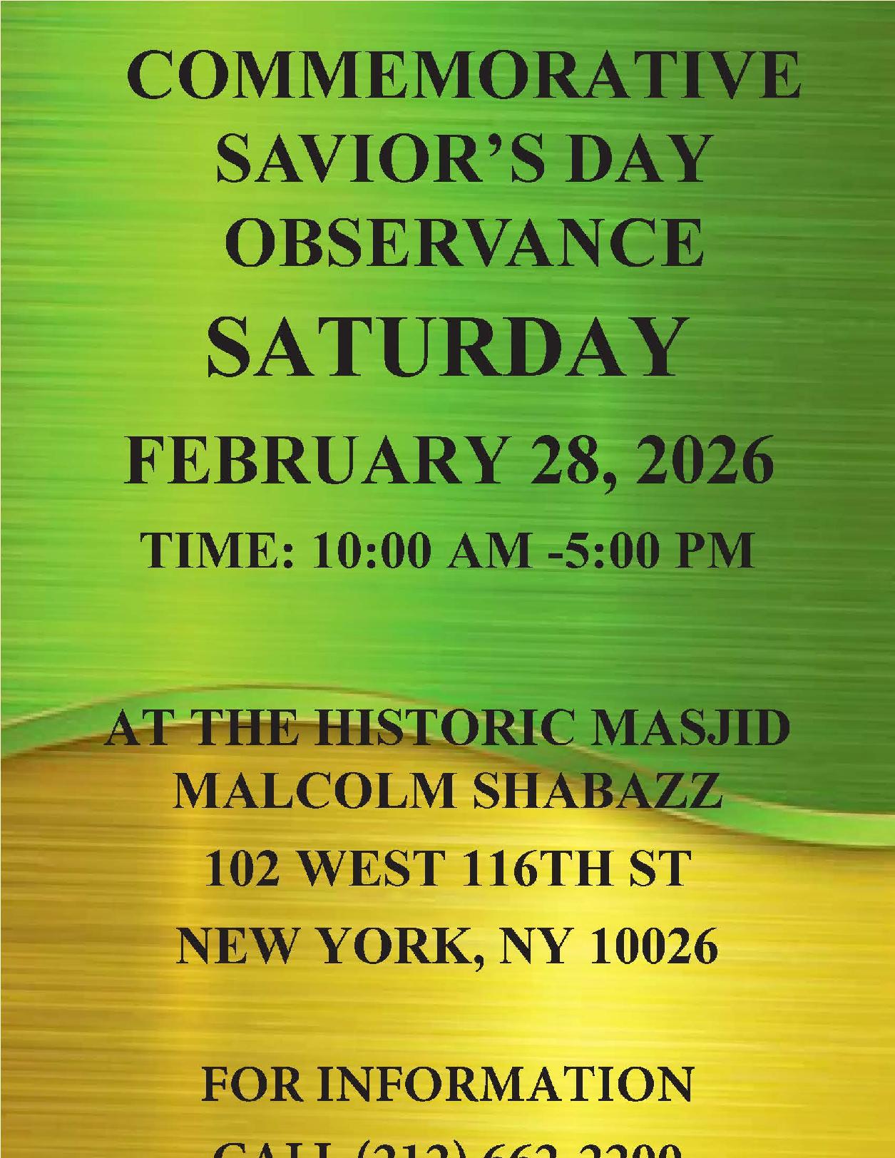 - Commemorative Savior's Day Observance